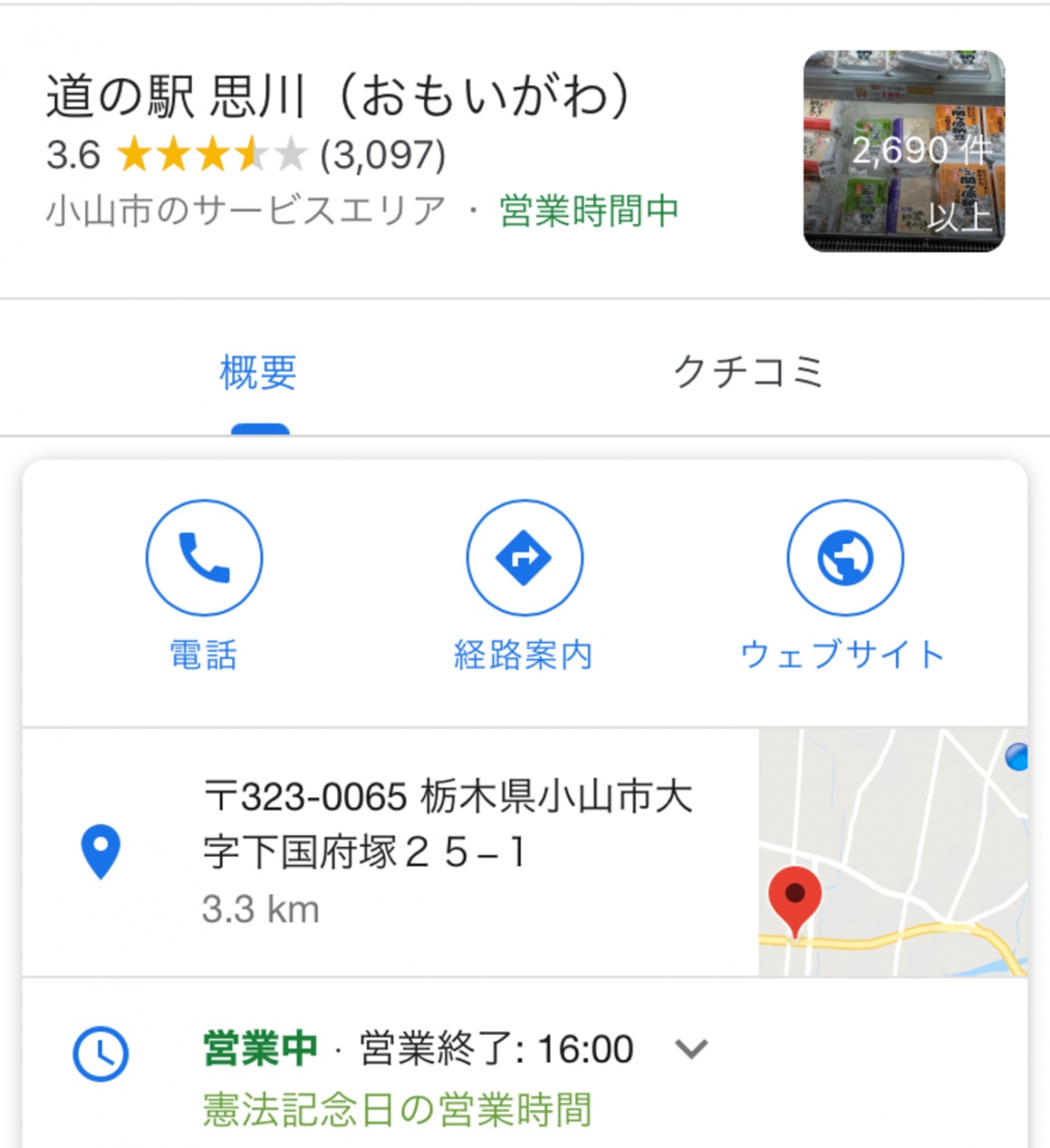 天気も良いので弁当を買いに【道の駅 思川】ところがココ、弁当に関してはちょっと弱いかも~「太巻き・いなり」の無難チョイス、特売の「焼売」を追加して決まりです!