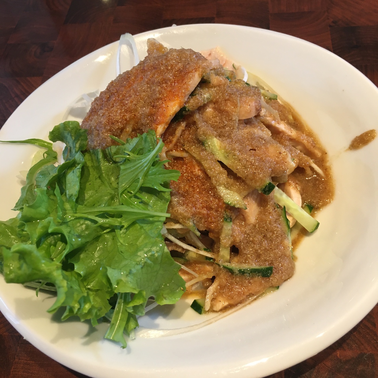 何も聞かずに「日替りランチ」を注文したが「棒棒鶏です」とのこと。。棒棒鶏で飯食うのか~?と思っていたら、コレが生涯イチくらい美味しい!