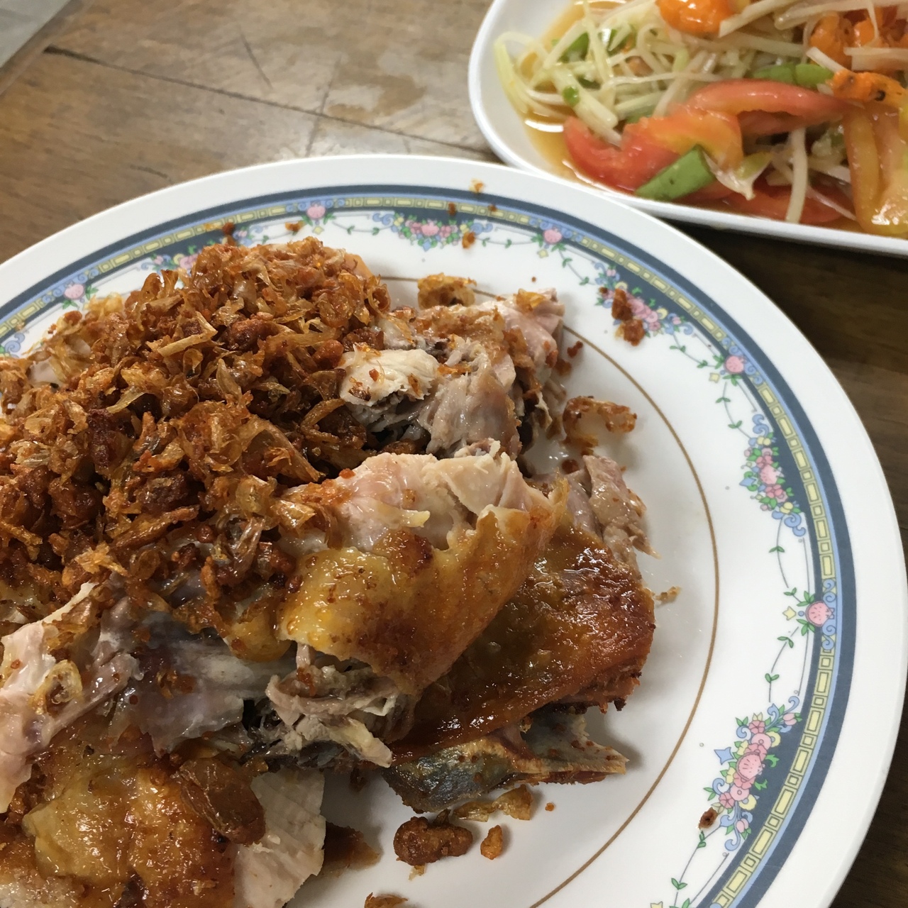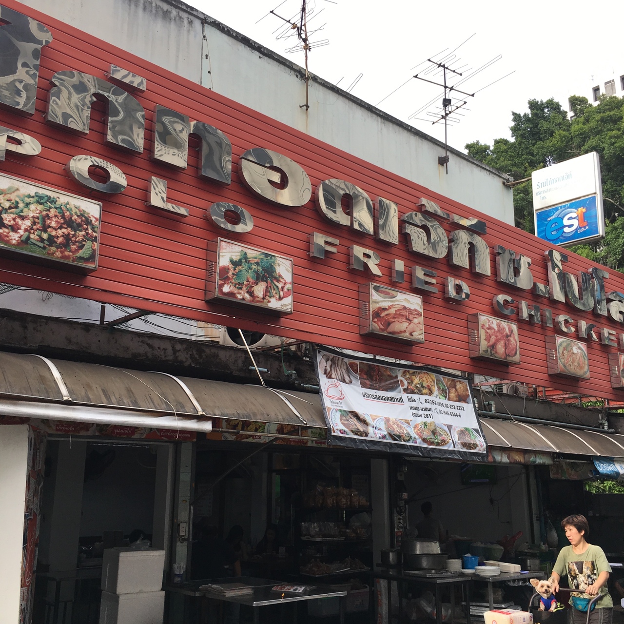 ルンピニ公園東 ルンピニ警察近く【ソイポロ フライドチキン】この通り ローカルさんもたくさんいらっしゃいます!注文の参考になりますね(やっぱり、地元は良く知ってる訳で)ま、基本は ガイヤーン1羽とソムタム!あとは 通って覚えます~近道無し~