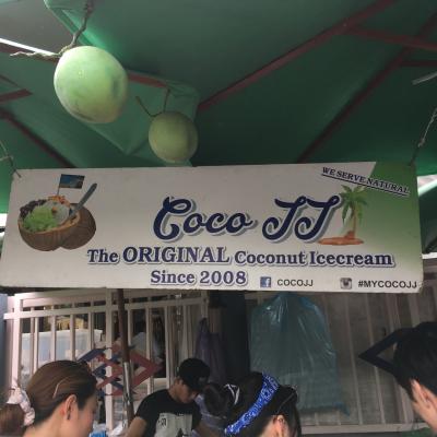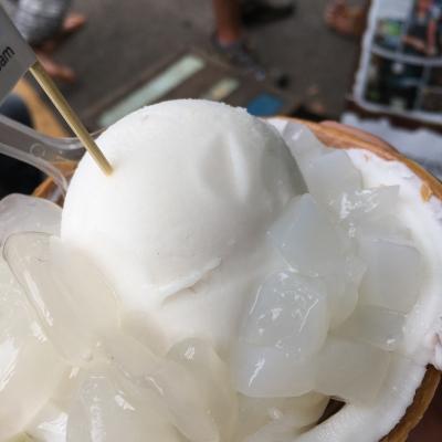以前 不味い(もたれる)ココナッツアイスを食べて、その印象を払拭する機会をなんとなく待っていたのですが、チャトチャックで発見しました!炎天下、小さな椅子で食べさせてもらいましたが 無事 以前のリベンジが果たせました!