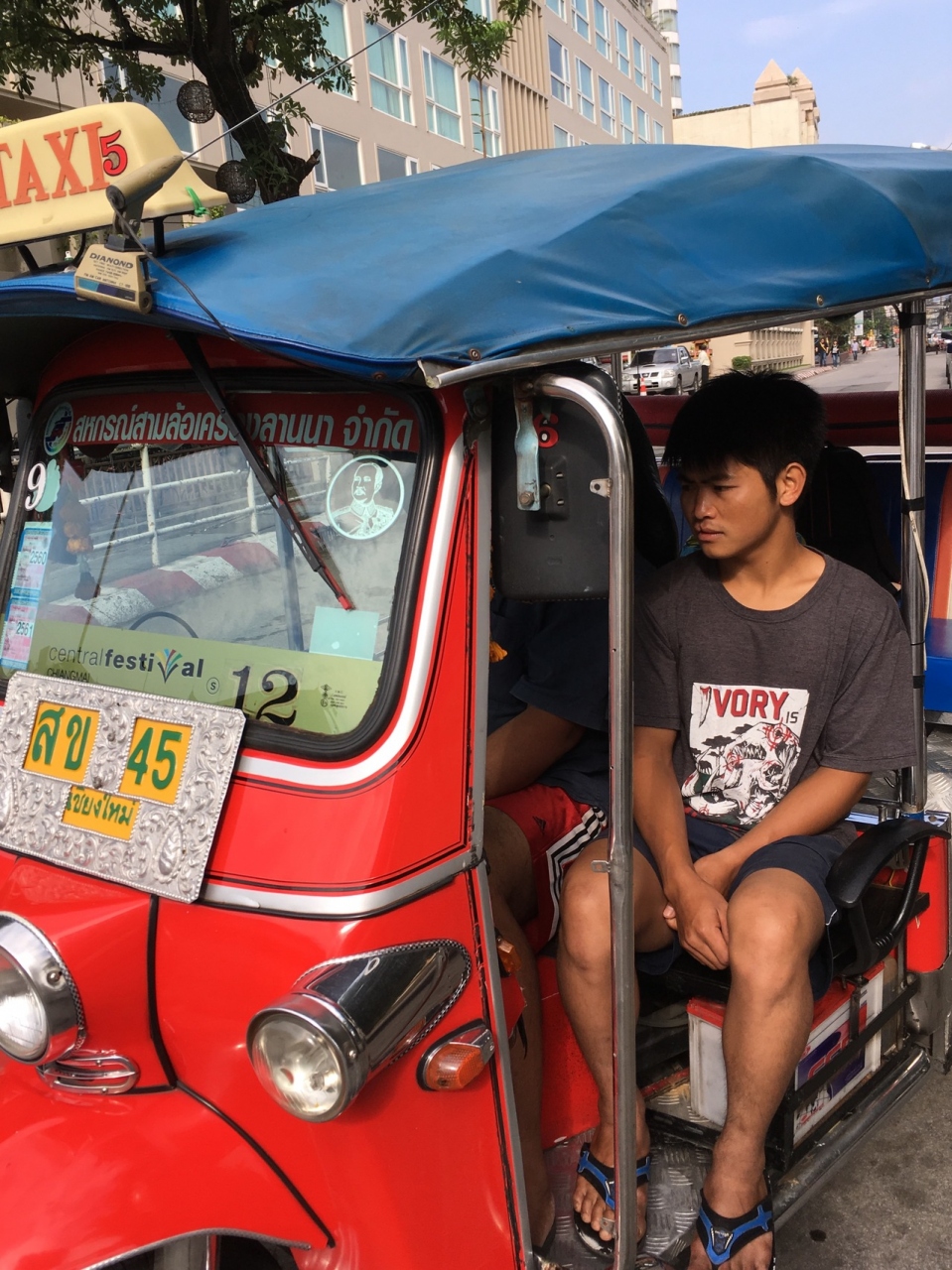 高い!ボラれる!排気ガス!的イメージで、私はツクツクには近寄りません。。さて、チェンマイ空港を出て、タクシー乗り場を超えて、ソンテウ来ないかなぁと歩いていたら、ツクツクが近寄って来ちゃいました、、100バーツで乗りましたが、もう少し のんびり走ってくれたら、ホテルまでの道程を楽しめたのにね~~
