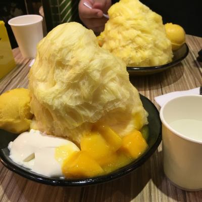 250元およそ¥900(2017年6月)のマンゴーフラッペちゃん!台北で、やっと評判通りの食べ物に出会えました(感激)。美味しいのに激盛り、もう十分なのに止まらないスプーン、これでもかのマンゴー果実。。食わずに死ねるか・・