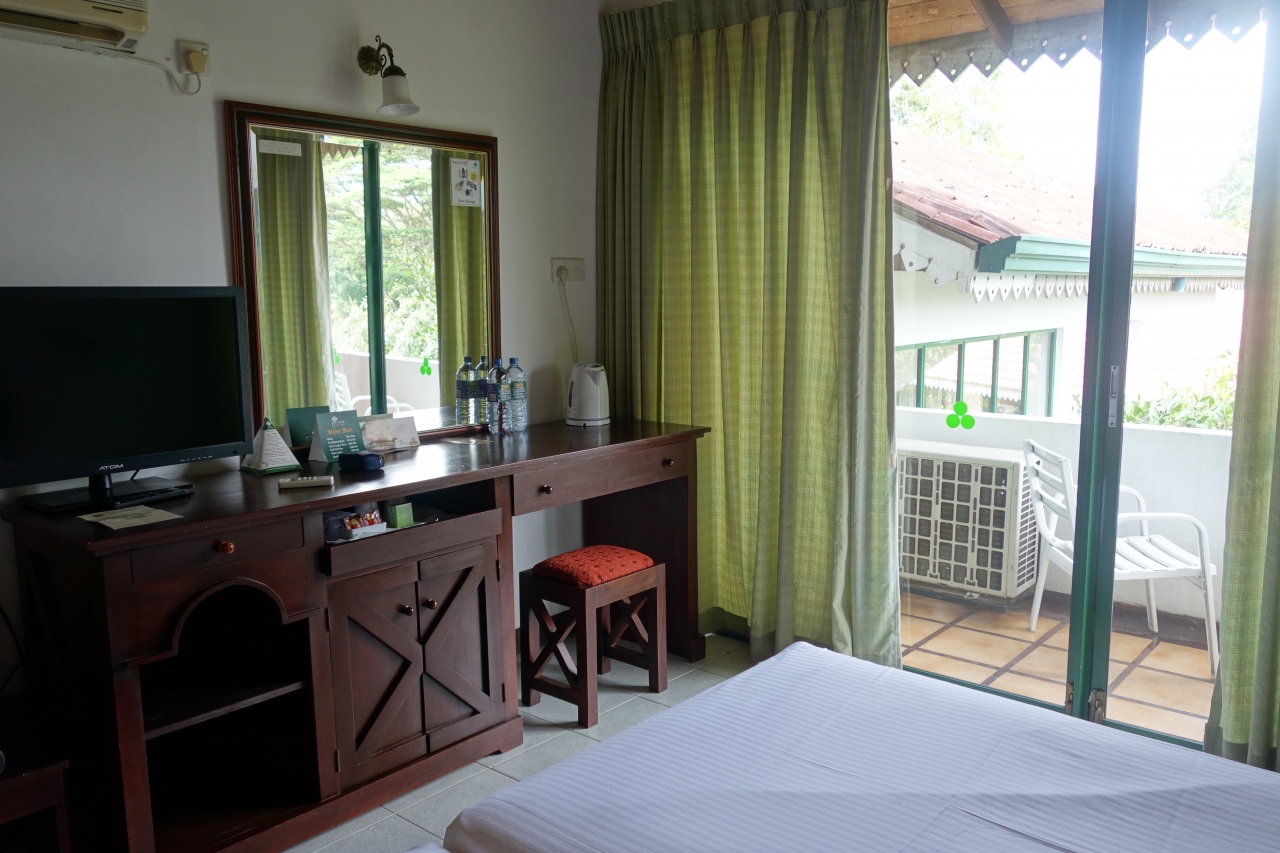 - ちょっと狭いですが、机や冷蔵庫、湯沸しポットもあり十分な設備でした。