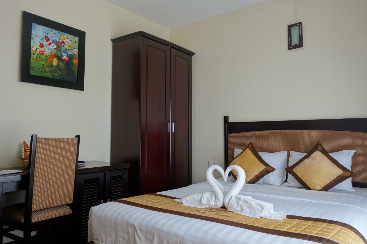 お手頃料金の宿が多く集まっているエリアにあり、周囲には大衆食堂やレストラン、ミニマートなどがあり、食事にも買い物にも便利でした。
