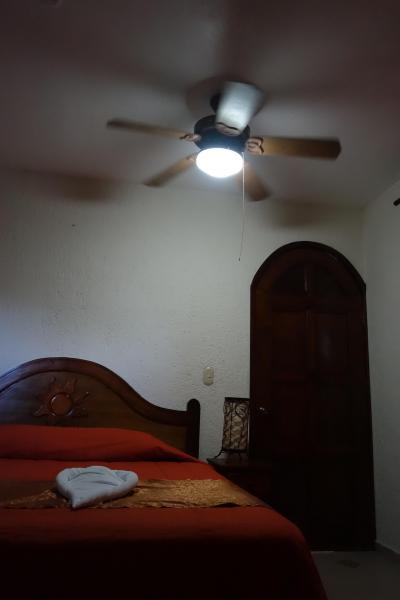 - きれいで機能的な部屋でした。小さな明り取り用の窓があるだけだったので、ちょっとカビの匂いがしました。