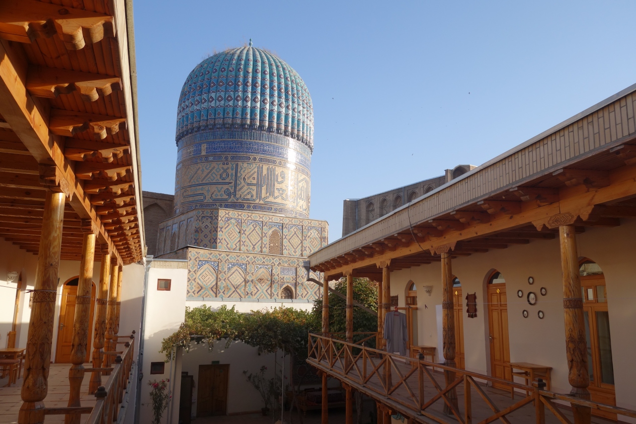 部屋を一歩出ると、ビビハニム・モスクが見られる絶景のホテルです。