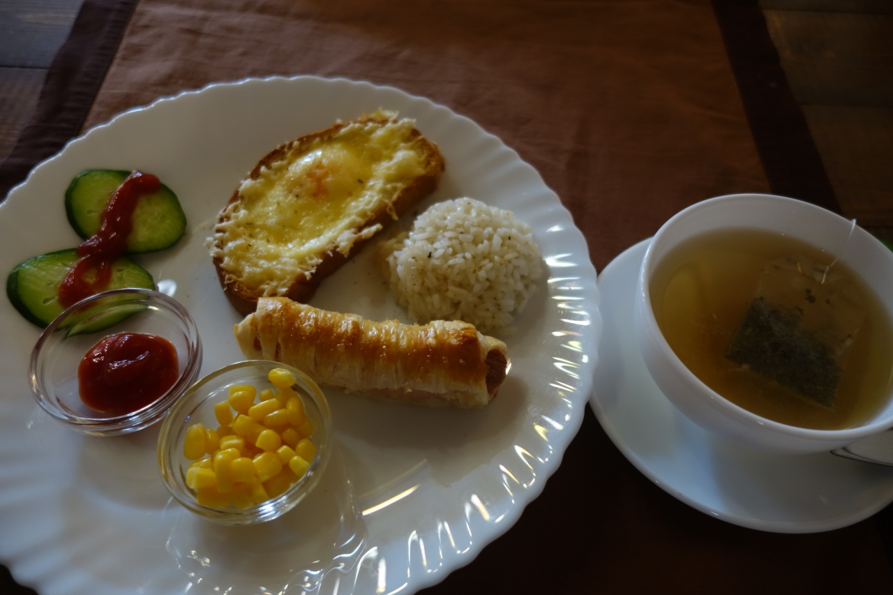 朝食は席に着くと、紅茶かコーヒーを入れてくれて、パンを温めて出してくれます。