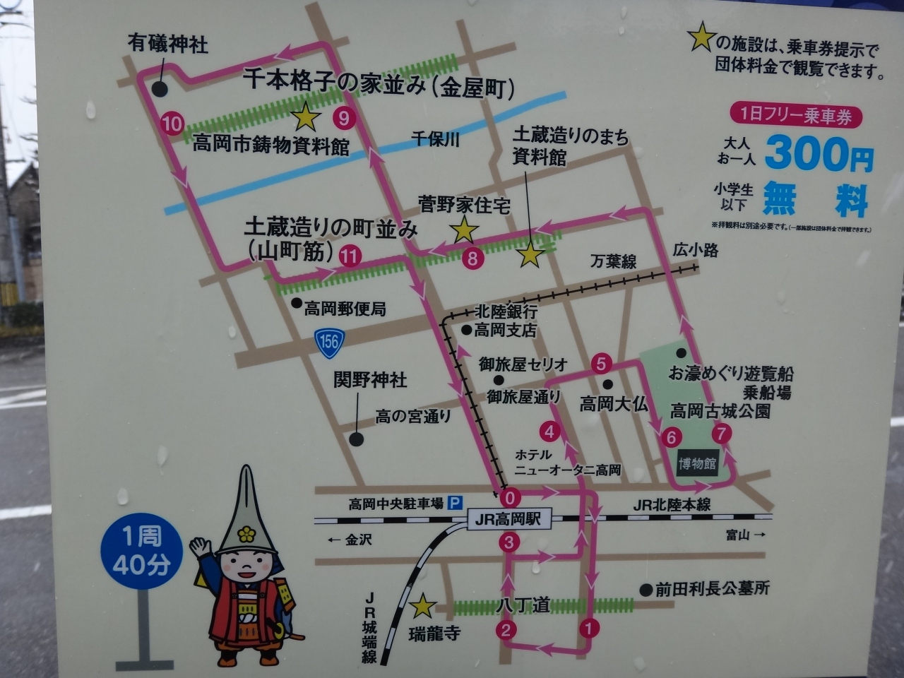 富山の高岡駅周辺の観光施設をぐるっと周遊できる観光者向けのバスです。