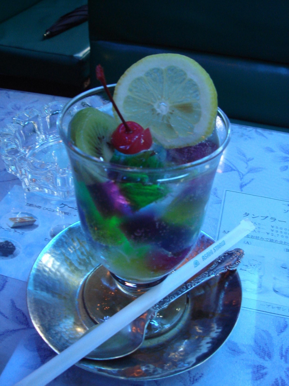 ブルーの照明にレトロなインテリア、メニューは懐かしいものばかり。