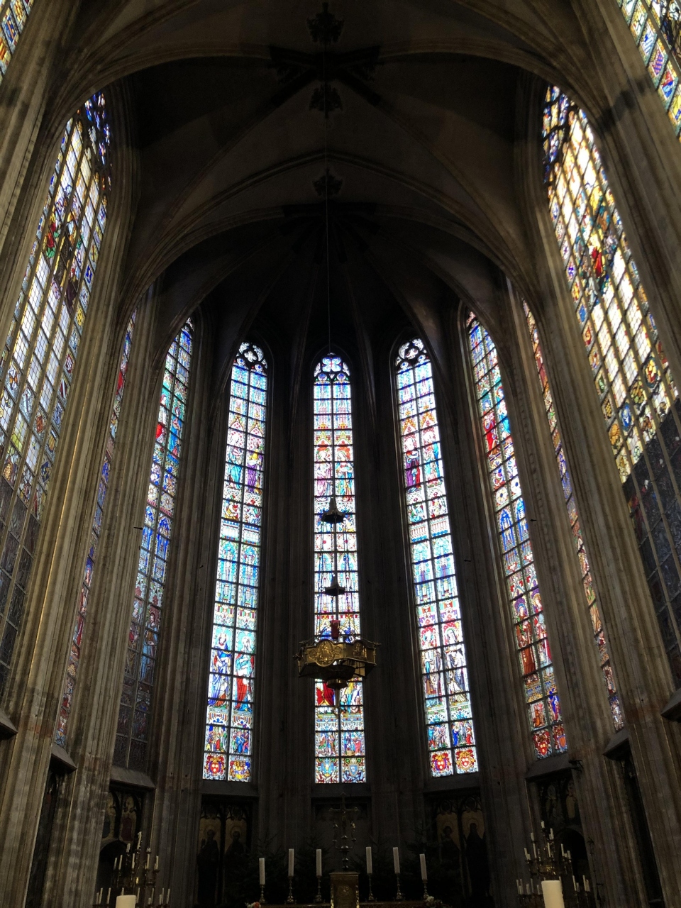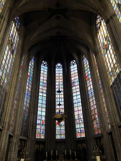 外観は至ってふつうの教会に見えますが、教会入り口の装飾が意外と細かいことに気がつきます。さらに、中に入るとあらびっくり。ステンドグラスが張り巡らされていて、とても美しいです。
