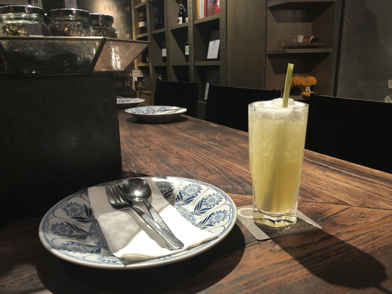 飲み物ということで、暑い日にはさっぱり気分にさせてくれるレモネードを注文。ストローがレモングラスというところで、なんともエコな配慮ですな。