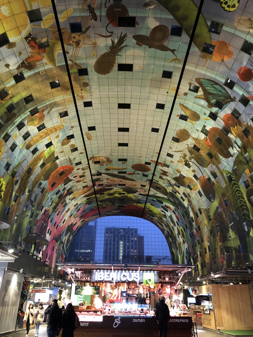 マルクトハル。巨大屋内マーケットで、中にはお店がたくさん。建築家集団MVRDVが手掛けた建築物で、なんと集合住宅と市場が合体しているとのこと。すげー。