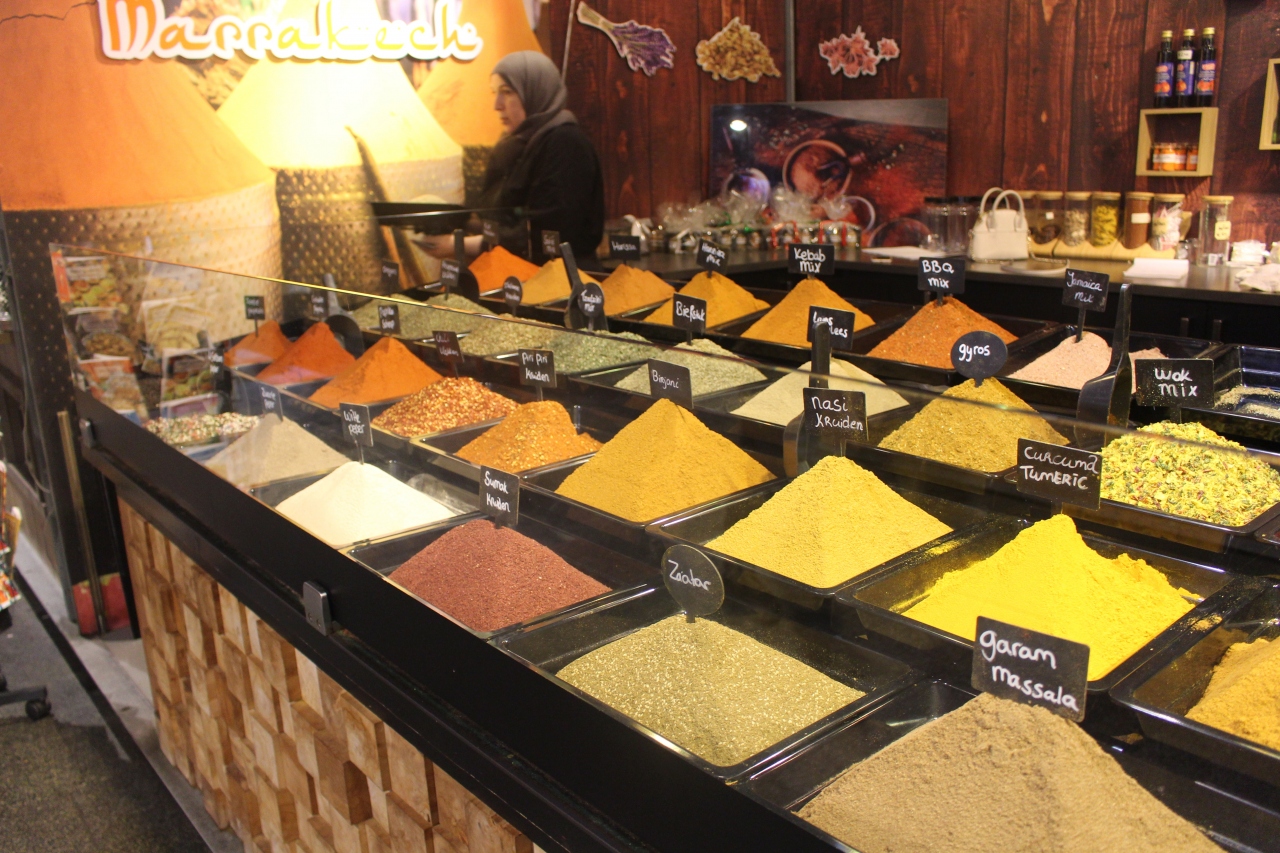 スパイス屋があったり、ハムのお店があったり、地下にはスーパーマーケットも併設。買い物が楽しいスポットです。