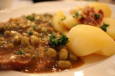 そして注文したルクセンブルク料理は、豚のネックを使った肉と豆のスープ、そしてじゃがいも。