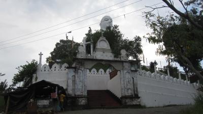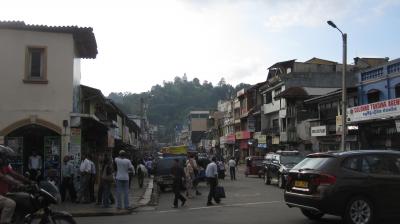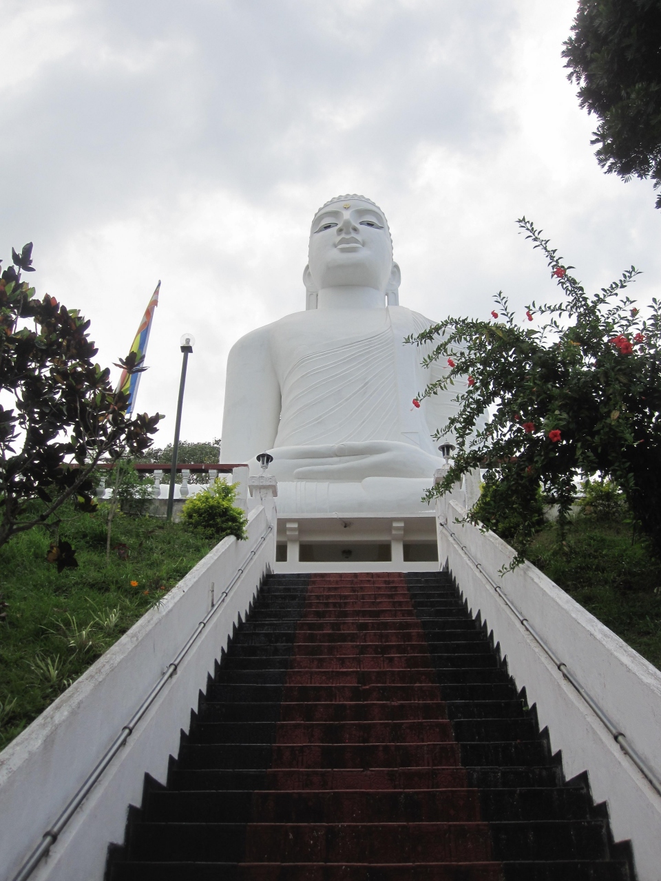 キャンディの市内中心部から、山の上に見える白い仏像。