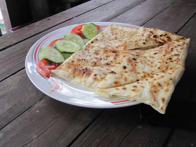 そのギョズレメも色々種類があって、今回はチーズとガーリックソーセージのものを選択。