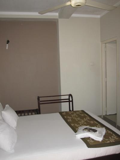 今回泊まった部屋は、ダブルのシングルユース、ファン使用で1800ルピー。
