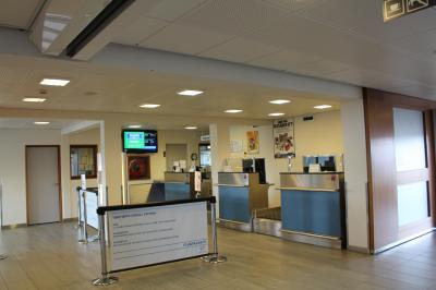 市内まで車で5分、徒歩でも20分くらいで到着という、便利な場所に位置する空港。