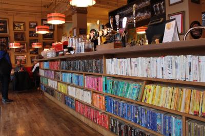 お店に入ると、そのおしゃれなインテリアに惹かれます。本棚の装飾で、ちょっとアーティスティック。