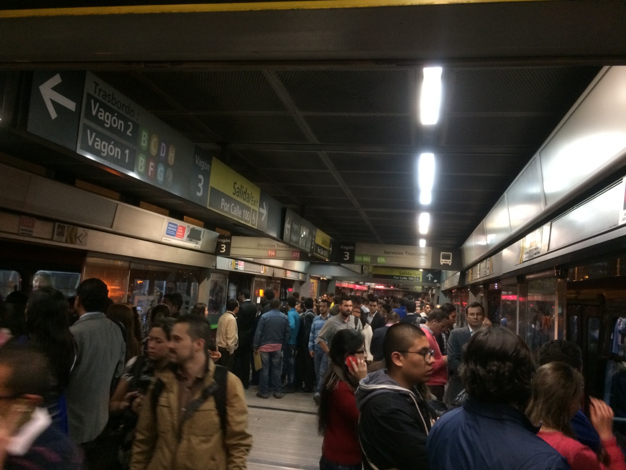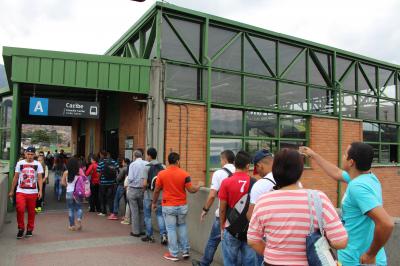空港行き、旧市街方面行き、北バスターミナル行きのトランスミレニオ乗り場まで、
