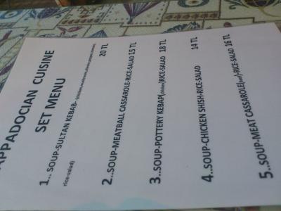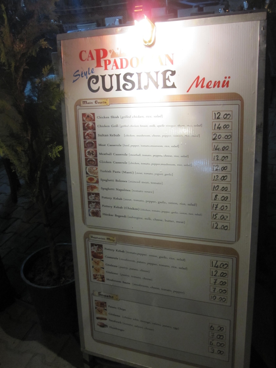 まぁ、どこも同じと思って、色々歩き回って、メインストリートのオトガル前からちょっと離れた西側、Uzen Dere CD通りに面した(http://maps.google.co.jp/maps?hl=ja&ll=38.64337,34.828522&spn=0.00159,0.001717&t=h&z=19&brcurrent=3,0x0:0x0,1)お店を選択。