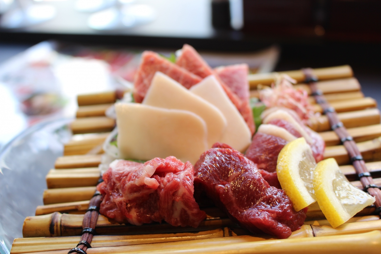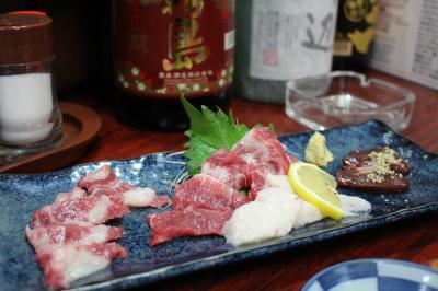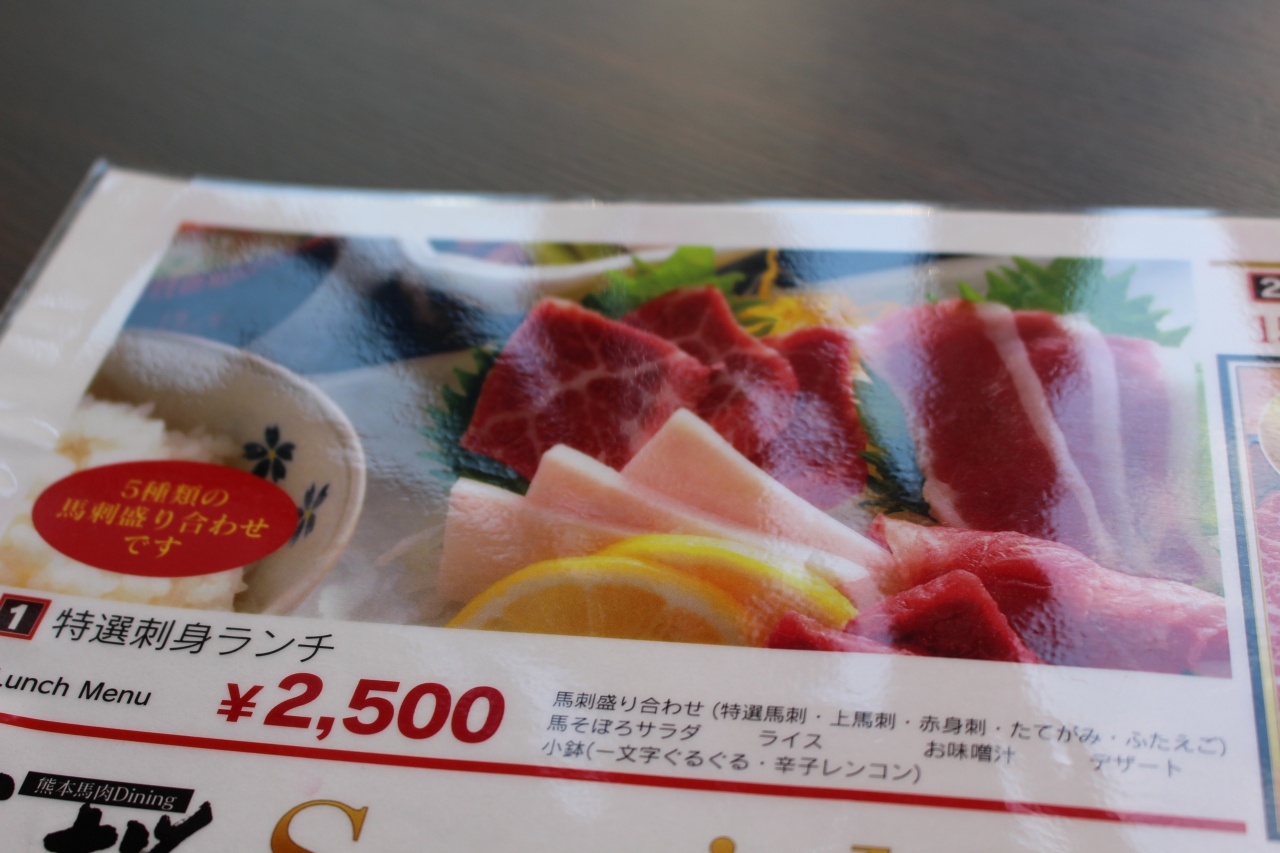 5種の馬刺し、特選馬刺・上馬刺・赤身刺・たてがみ・ふたえごを味わうことができました。