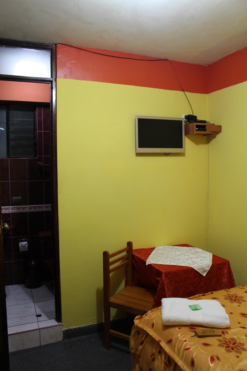 マチュピチュ駅からは、市場を抜けて、サッカー場の近くにあるホステル。
