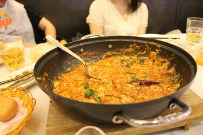 名物のチリクラブは時価。友人と3人分での注文は、2匹を使ってもらいました。