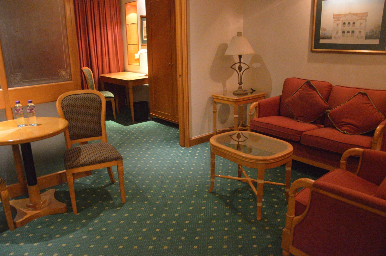 まずおすすめは、立地条件。中環や上環などの中心地からも遠くなく、トラムの駅の目の前。空港行バスも至近距離なので行きも帰りも楽々でした。周辺にはコンビニ数軒、スタバや食事処も多いので食べるものにも困りませんでした。部屋はスーペリアルームに泊まりましたが、リビングルームとベッドルームと分かれており、仕切りもあるので、相方に合わせることなく自分のリズムで過ごすことが可能です。欲を言うなら、床がフローリングであってほしかったということ、部屋の電気が暖色系なので暗く感じたこと、あと、ワイングラスが置いてあればなおよかったかな!