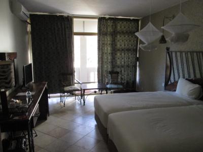 フロントの方は英語が通じてとても親切です。周辺にはちょっとした居酒屋や少し小奇麗なアフリカ料理が食べられるお店もあります。