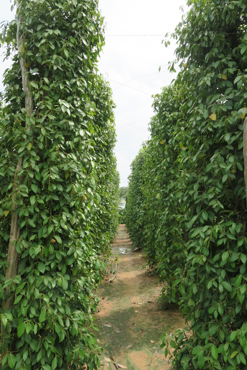 胡椒の農園は自由に歩き回れますので、胡椒の木を間近に観察できるのは良いところです。面積が広くないぶん胡椒の添え木に高さがあって、少ない面積で多く収穫できるようにしているのだと思われます。その分、畑のなかでかくれんぼをしてみたり、写真を撮る際に見栄えはしやすい面があります。- 旅行時期