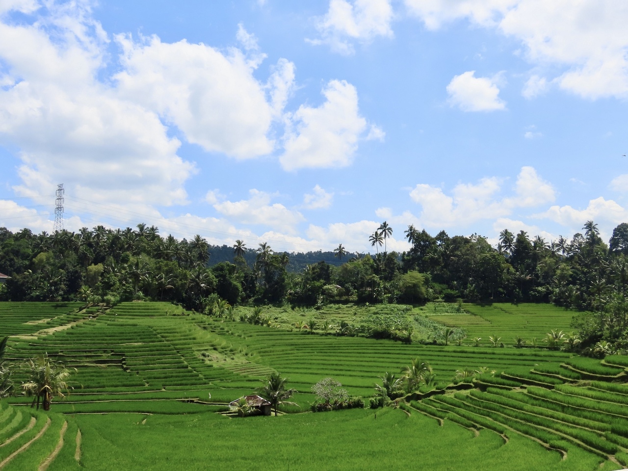 有名なライステラスは他にありますが、最も地味なライステラスの一つがこちらでしょう。尾根沿いの道が弧を描くロードサイドに数件のワルンが建ち観光スポットになっています。