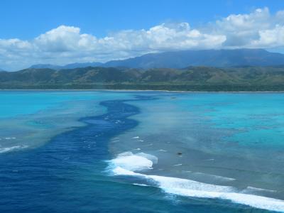 ポエビーチの少し内側にあるエアロドームポエからフライトし、20分コースと45分コースが容易されています。短いほうのコースでも世界遺産の絶景のハイライト「ラ・ファイユ」の姿をガイドブック以上に様々に観察できます。