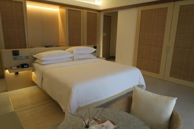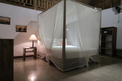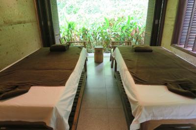 ヴィラは屋根と壁はあるけれど外とは繋がっていて、周囲の音や空気を感じることが常にできます。なので部屋のなかにトカゲやセミはしょっちゅう入ってきますし、そういったものも楽しみとして捉えられるならとても楽しいリゾートでした。次々に通り過ぎていく色々な鳥の声で目が覚める朝は贅沢としか言いようがありません。エアコンは天蓋と蚊帳のついたベッドの中だけ効くかたちのものがついていて、ほかに部屋には扇風機が3台ついていましたので、空調は快適に調節できます。レストランは2つあり、ロックレストランのほうで朝食が提供されますが、食事も色々と選べますし、味もよかったです。ビーチは美しく、ビーチの中の海は珊瑚はないですが、岩場と砂地がバランスよくあるので魚はみれます。レセプションは当りはずれがあって、引継ぎがなされていないことがありますが、総じて親切でよいホテルでした。