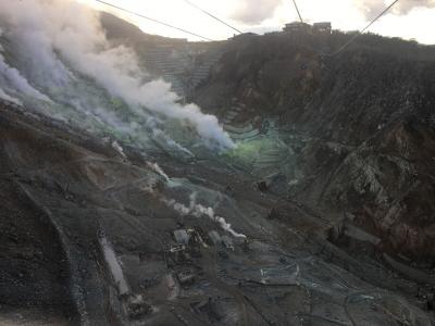 硫黄臭の強い噴煙がもうもうと出る谷地の風景は圧巻。地獄さながらの景色を高台から眺めることができます。また、振り向けば位置的に大きく映る富士山も、ああ日本の風景!って気持ちになります。大涌谷の玉子状の石碑と重ねてもよし、重ねなくともよし。さすがここだけの魅力に溢れた箱根を代表する観光地です。
