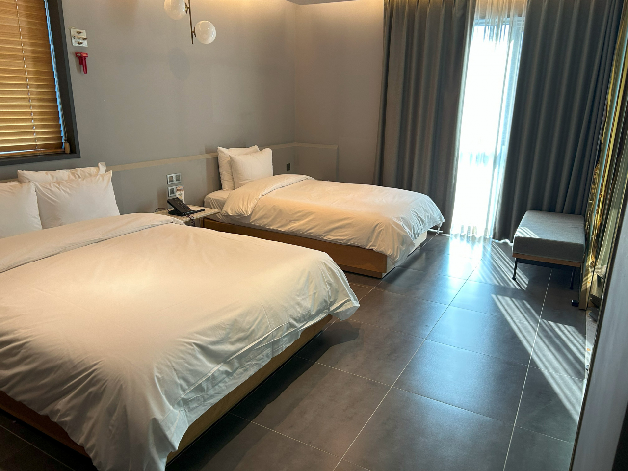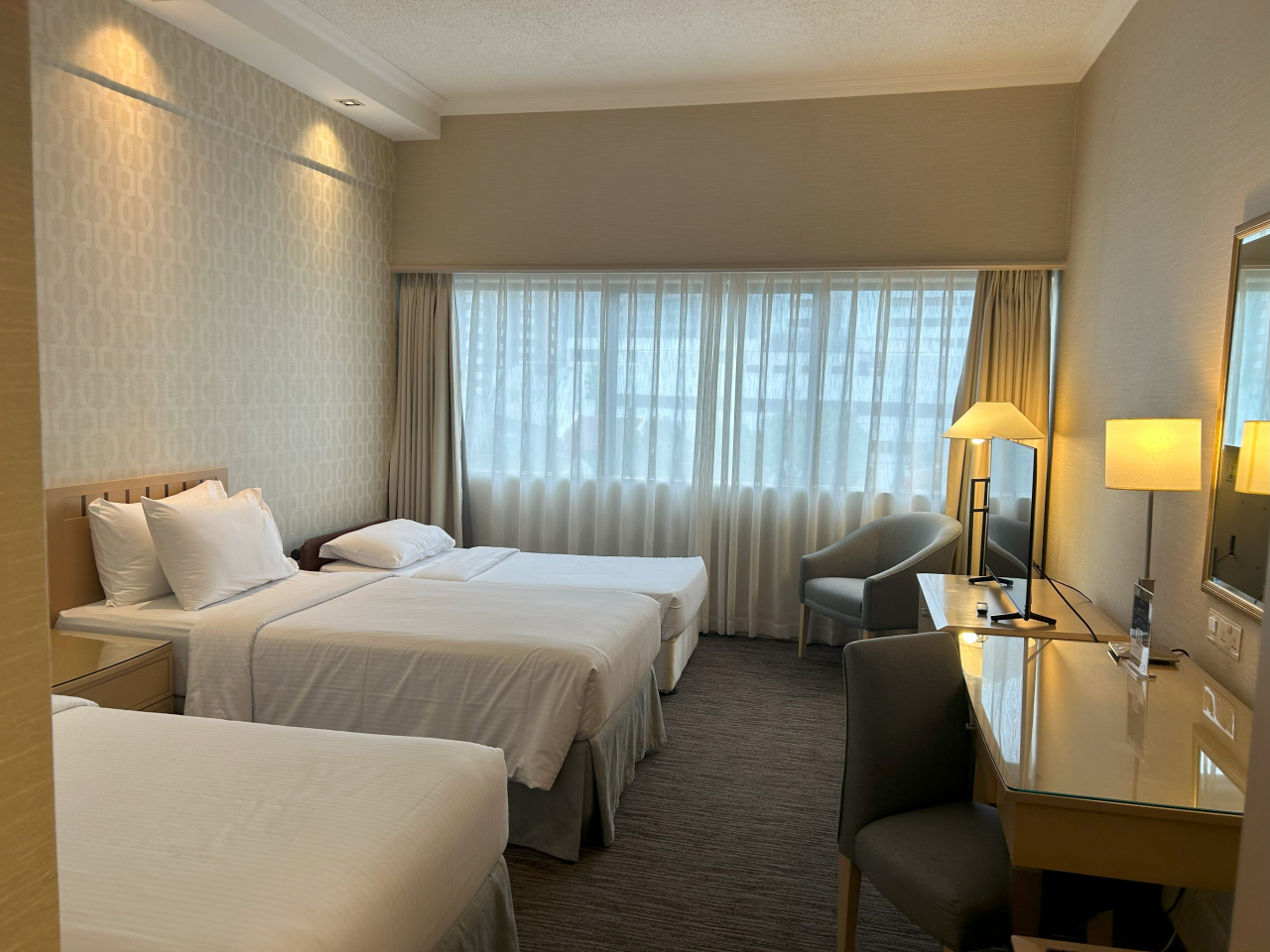 ファミリーツインルームは広くて、出窓もたくさんあって明るい部屋でしたが、