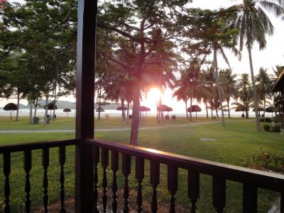 我々はデラックスシーフェイシングの部屋に泊まりました。シーフェイシングとは言うもののビーチまでかなり遠く、部屋の前には芝生が広がってました。しかし遠くに水平線に沈む夕陽を見ることができてなかなか雰囲気は良かったです。