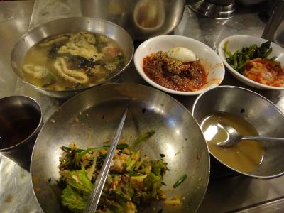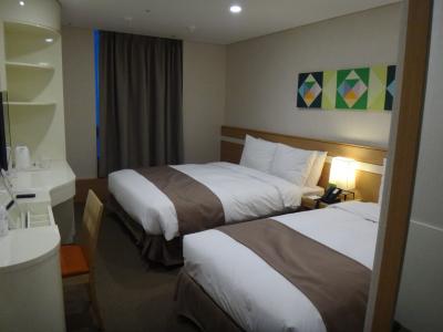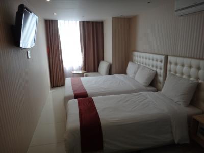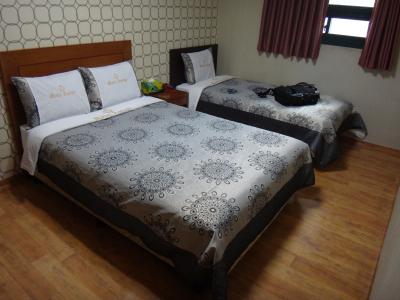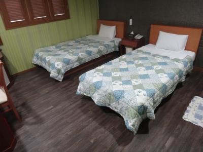 古いホテルだそうで施設はかなり年季が入ってましたが、我々の泊まった部屋は結構広くて落ち着けました。ベッドはセミダブルとシングルの2つ、クローゼットスペースも広くて着替えをしまう引出もちゃんとあって設備はなかなか充実してたと思います。清潔だし、バスルームの水量、水はけなども含めて総じて何も問題なかったです。そうそう冷蔵庫が大きかったのが我々にはポイント高かった。今回はスーパーでも市場でもキムチを大量に買い込んだのですが、帰国まで全部しっかり保存できました。冷凍スペースもあったので保冷材の冷凍も可能です。