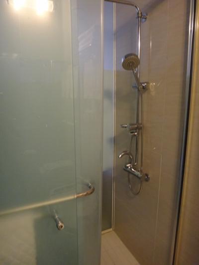 - これも事前のリクエストのおかげでシャワーはブースになってました。変則的なつくりになっているところが多いらしいです。