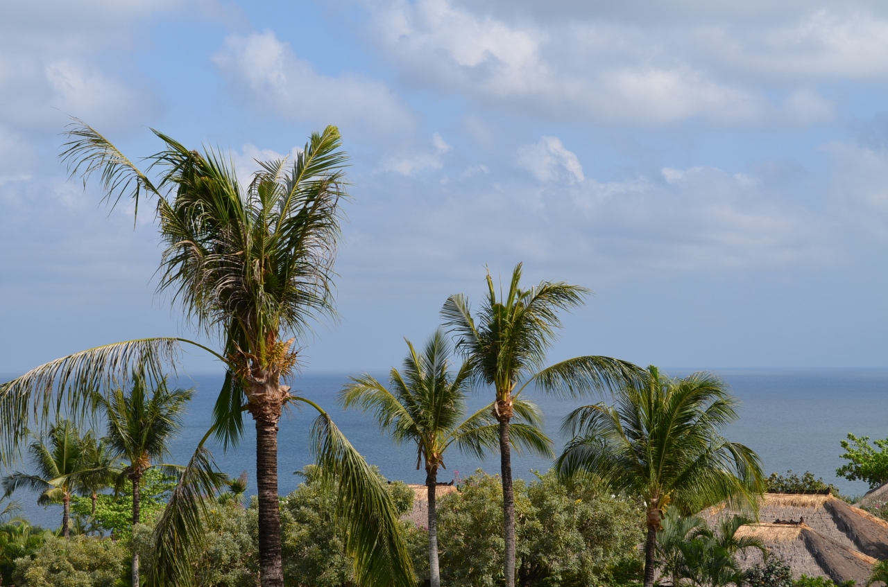 ベランダに出るとジンバランのきれいな海が南国の木々の向こうに見えます。朝、昼、夕方、夜とそれぞれの表情が変わって見えるのもすごく良かったです!