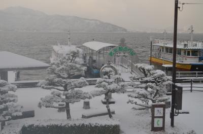 初日はお天気まずまずだったのですが、翌朝目覚めるとドカ雪が積もっていて、駐車場の車がすっぽりと雪に包まれていたんです^^;