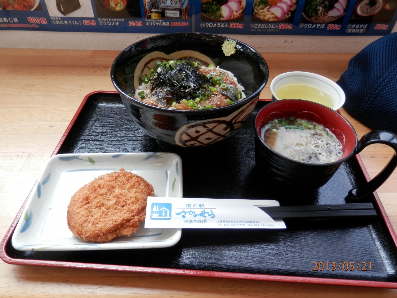 楽しみにしていた関サバは、「漁が出来ないので他の産地のものです」との表示がありました。その分良心的だなと思います。鯖丼を注文して、お汁付きで、美味しく頂きました。