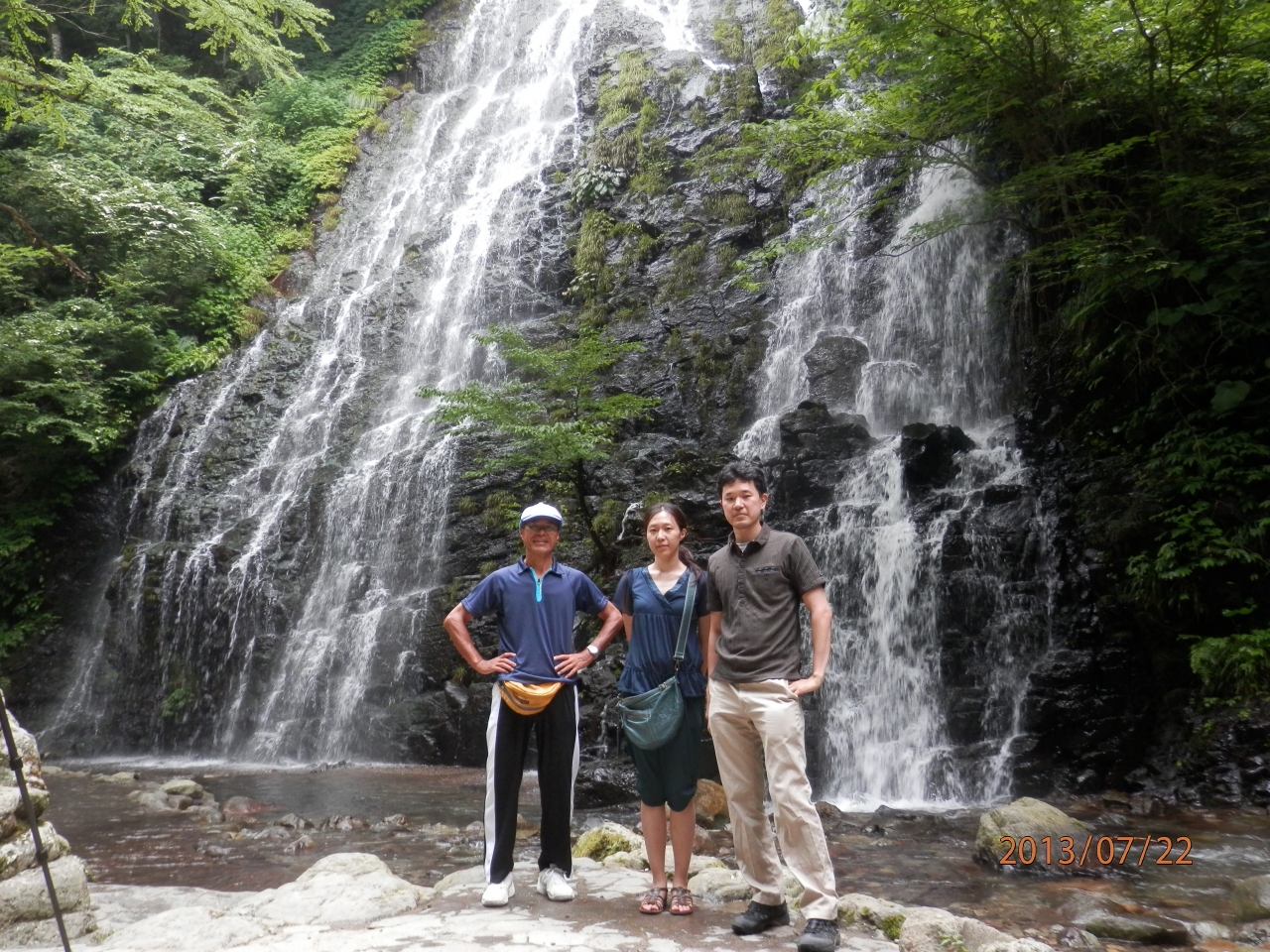 第1駐車場に車を止め、かなり歩くことを覚悟したが、滝は50メートルほどいったところでした。