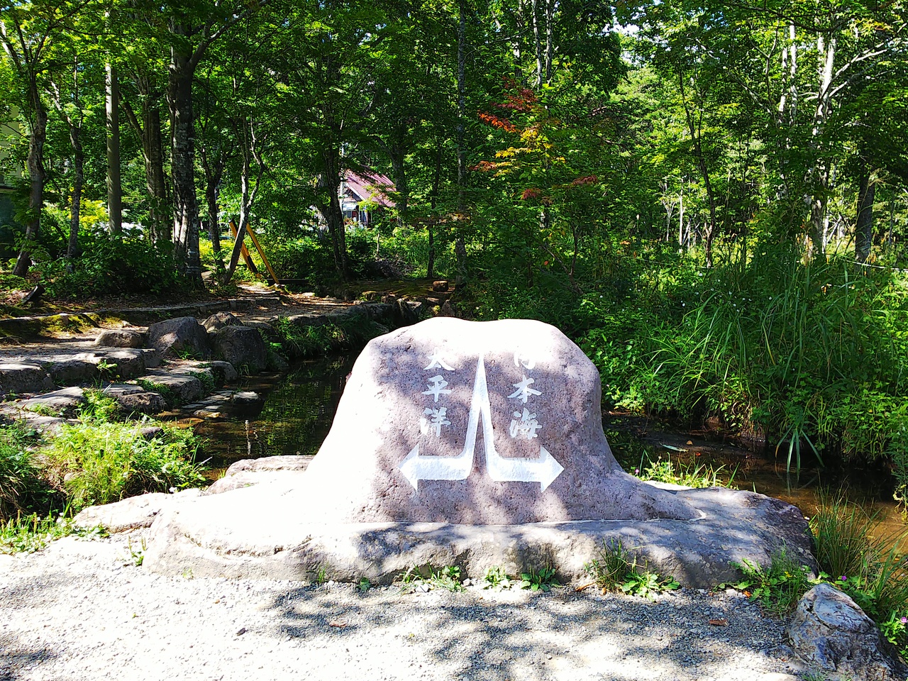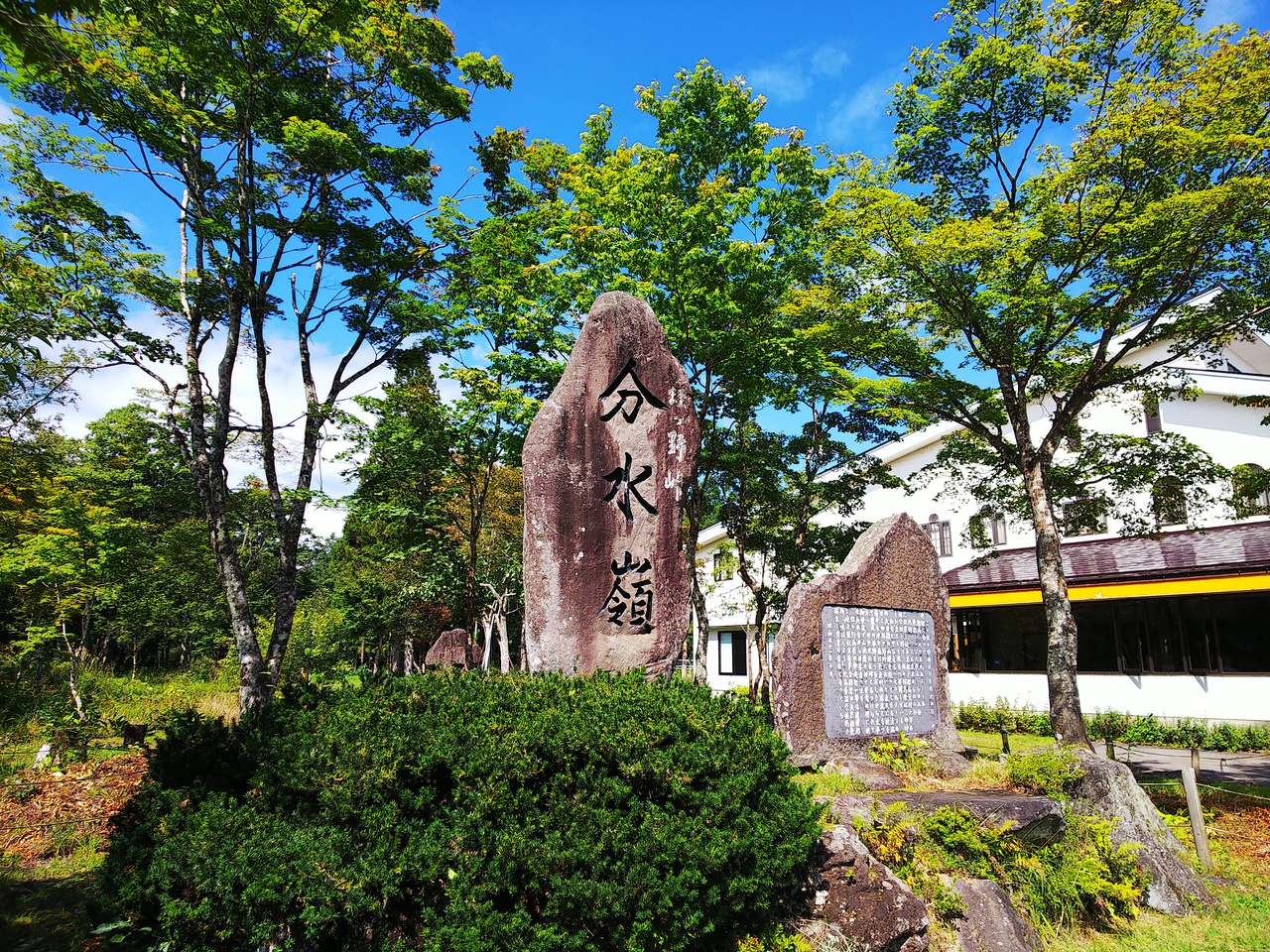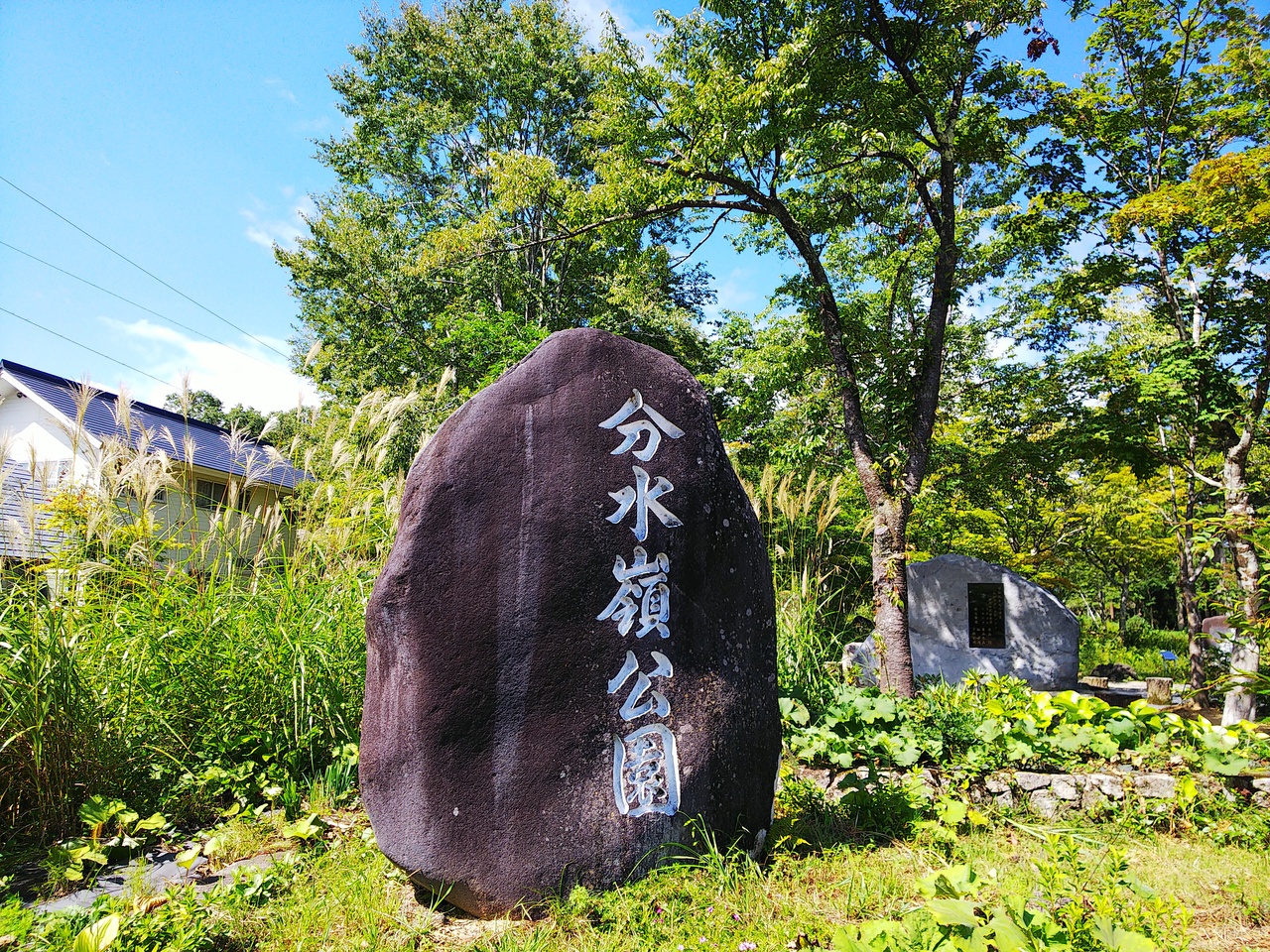 公園の隣にあるアイスクリーム屋さん目刺しで移動していたのですが、車を停めた公園に分水嶺の文字を発見。