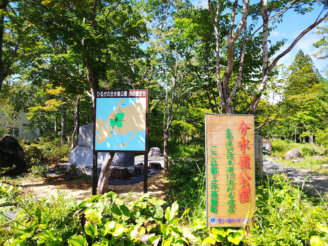 日本海と太平洋へ向かって、それぞれ庄川・長良川と別れていく様子が、公園内で見られます。
