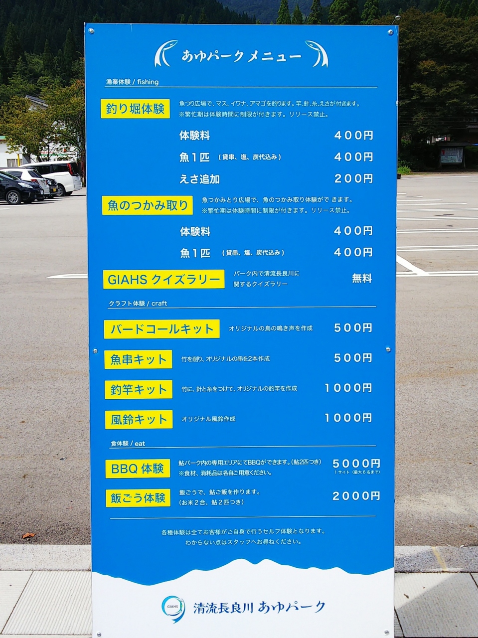 あゆパークが併設されていて、釣り堀や魚のつかみ取りなどの体験が出来る、体験型の道の駅です。