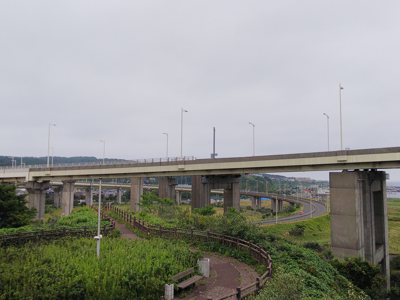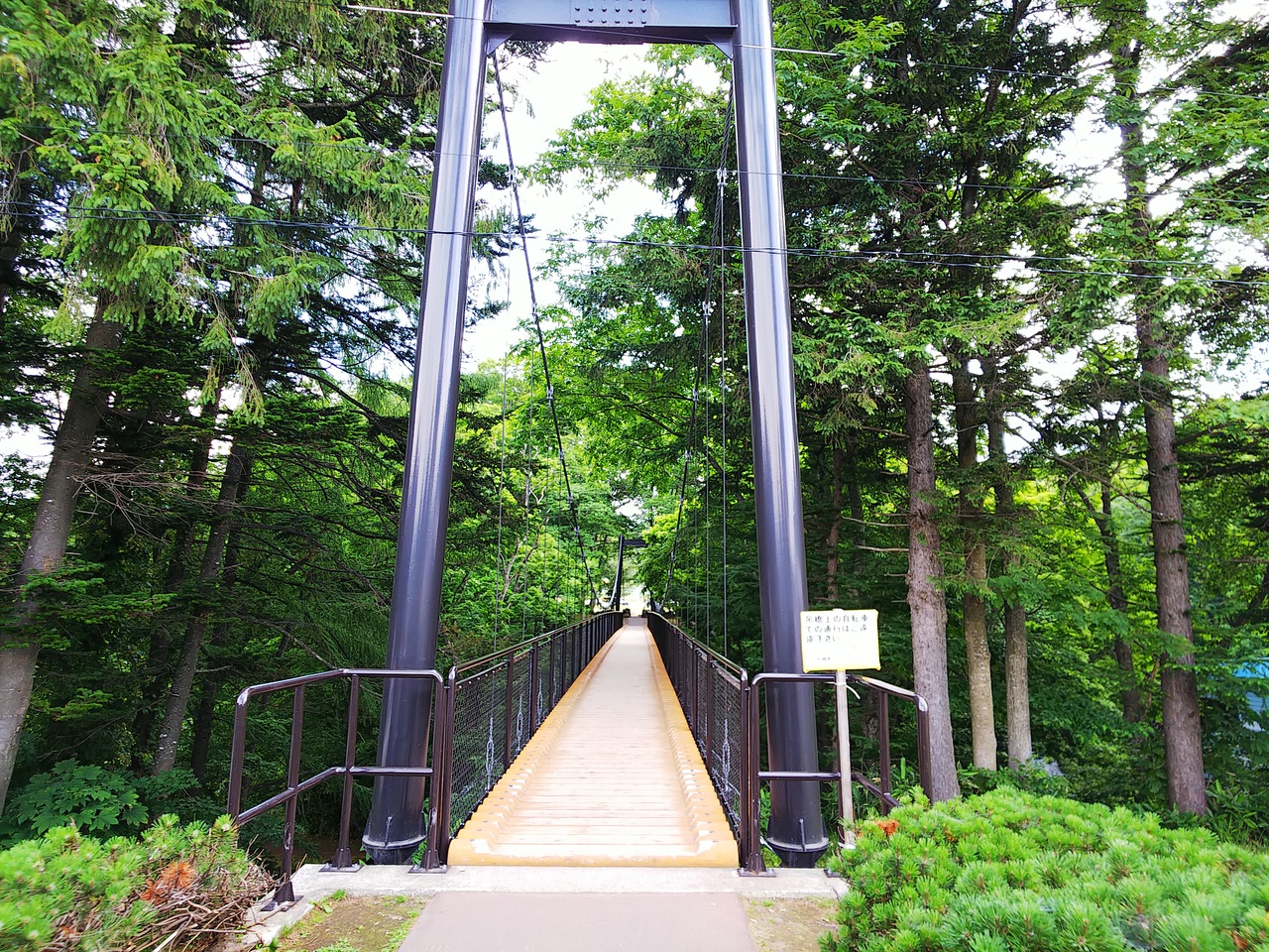 道の駅の建物脇に、散歩コース(ふきだし公園)へとアクセスする橋を渡って移動します。