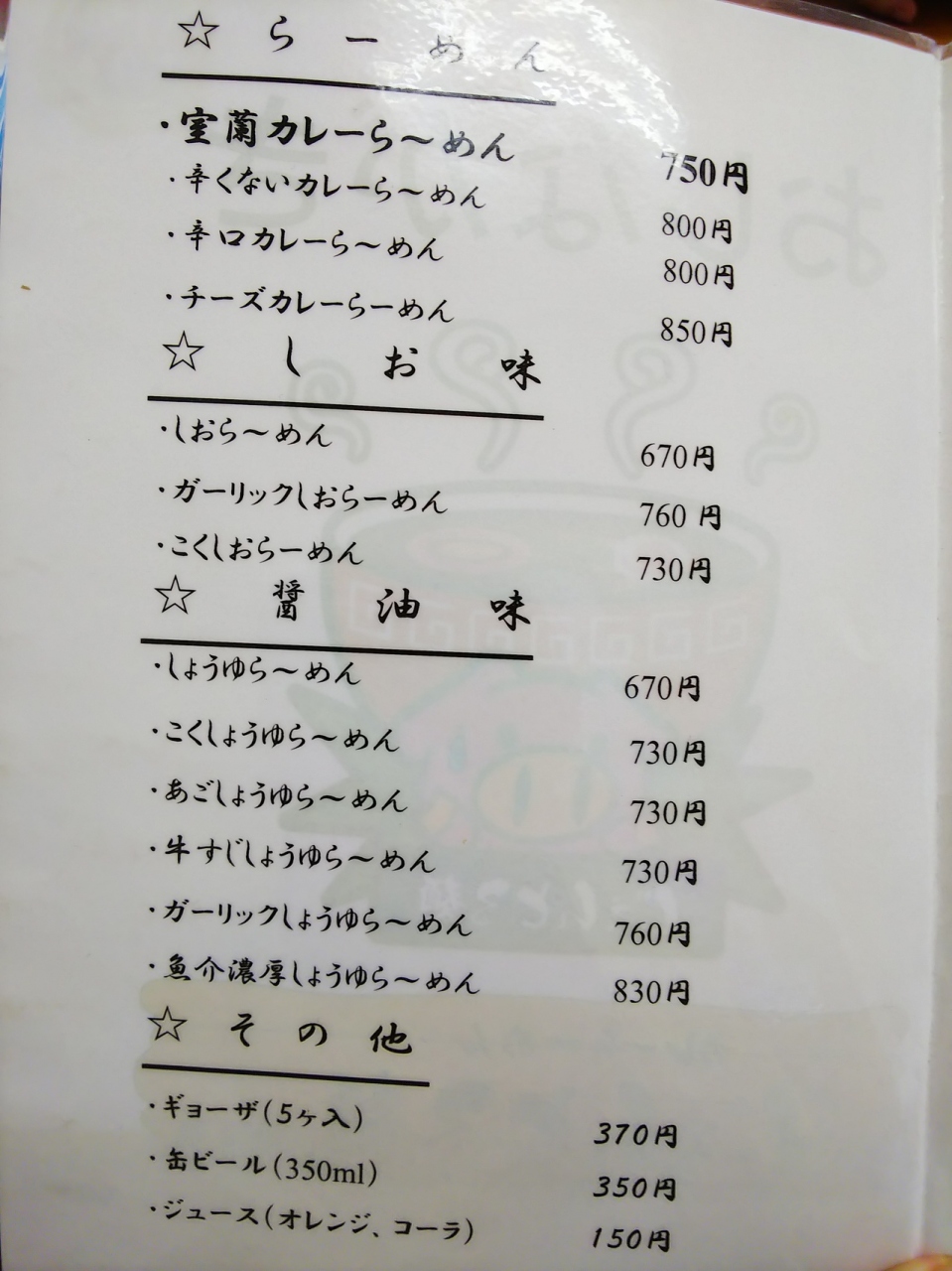 ラーメンのメニューはカレーだけでなく色々有りました。