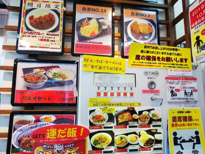 飲食コーナーの入口にある券売機で、食券購入ですが、先に座席を確保してからの為に出たり入ったり、入口近くのテーブルは落ち着かないので避けた方が良いです。