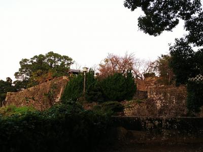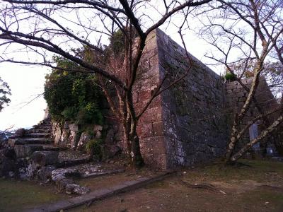 熊野川にかかる橋から、小高い丘に残る石垣が雰囲気の有る城跡です。